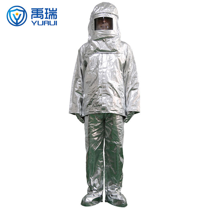 用于熱幅射場所的全身防護。面料為鋁箔復合阻燃織物,襯里為天然纖維織物。具備抗輻射熱滲透性能:內(nèi)表面溫升小于25度。具有阻燃、耐高溫、質(zhì)輕、柔軟抗?jié)B水等性能。在800 - 900度熱輻射下,70%熱量返回,裝配牢固。重量: 2kg.形成完整的300、500、 700 、900系列隔熱服及配套附件產(chǎn)品,可滿足多種工作環(huán)境的熱防護要求。